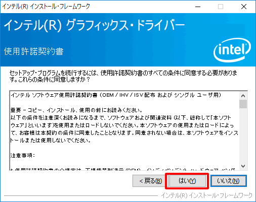 5.「使用許諾契約書」が表示されるので、内容を確認した上で[はい]をクリックします。
